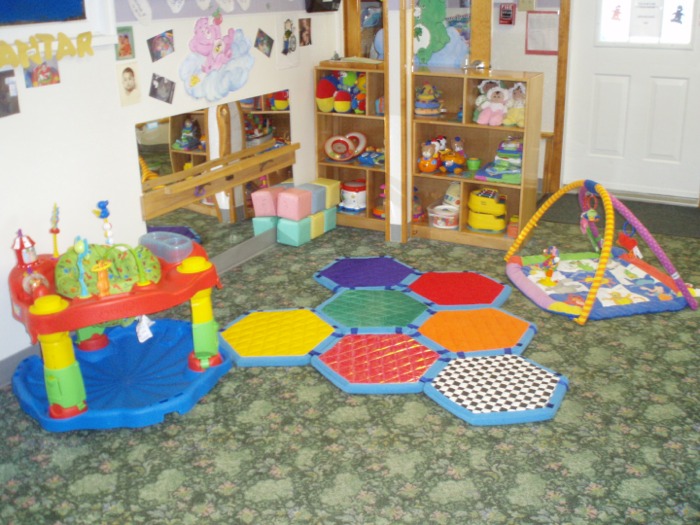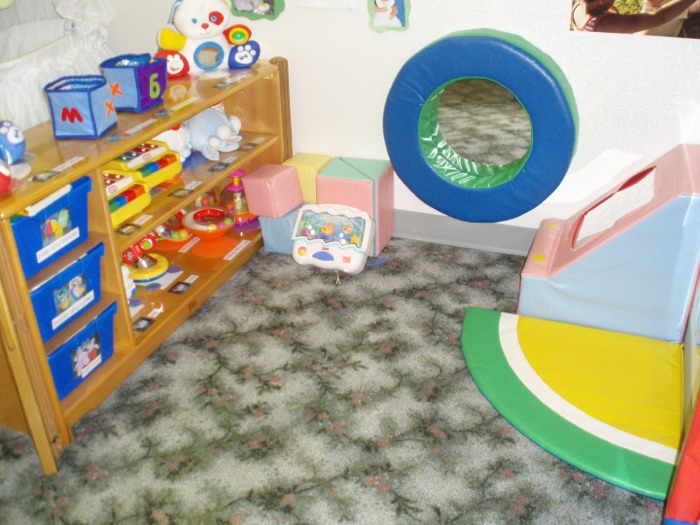 Our infant care provides a cozy and nurturing sleep environment, following safety regulations and prevention of SIDS. Individual sleeping areas are equipped with a mobile or music box, providing babies with a comfortable, relaxing musical experience. Children are in their cribs ONLY when napping.