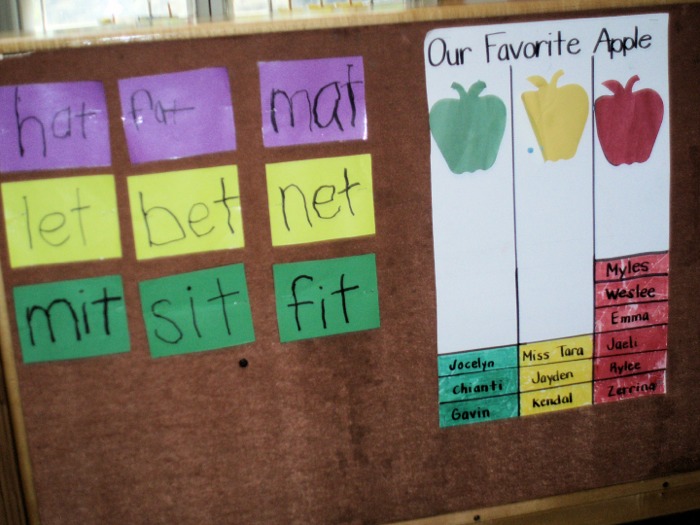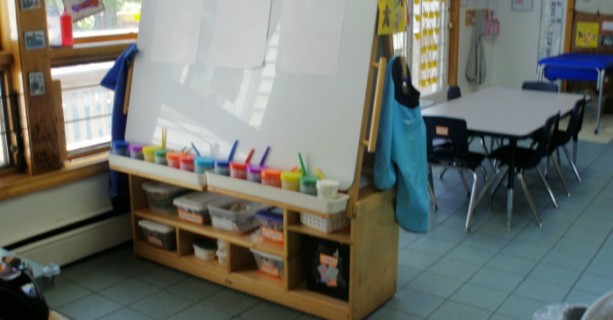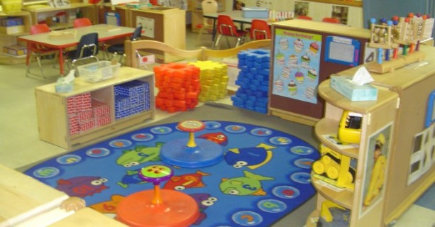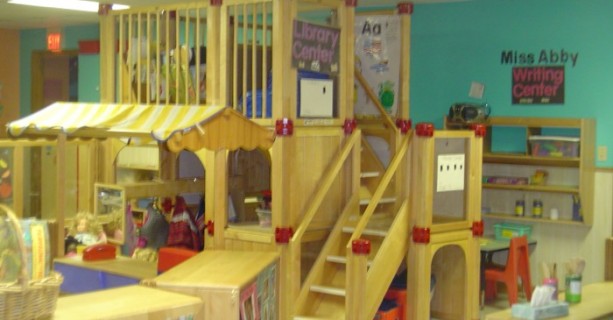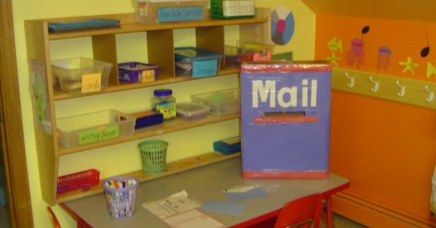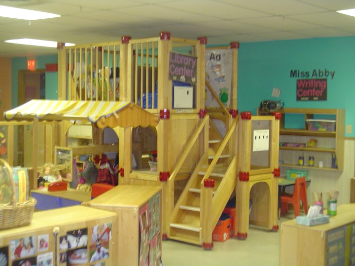 Sit in any classroom and you will hear the sounds of learning and laughter. You will feel the energy of children actively engaged as they learn through play. Note the focus on literacy, with both library and writing centers in the classroom.