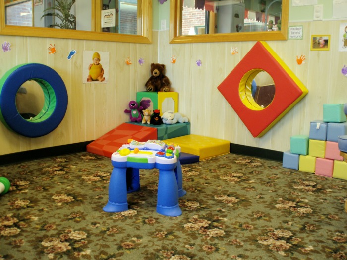 Soft elements provide a safe and nurturing place for younger toddlers to learn and experiment. Soft materials, carpeting and climbers encourage toddlers to exercise gross motor skills in a safe atmosphere.