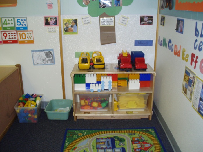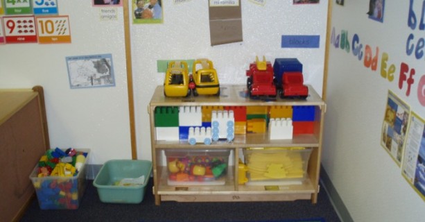 Toddlers love to zoom their trucks along primitive roadways constructed with large, easy to maneuver blocks. Here toddlers learn to put together and take apart. Different blocks are available to strengthen muscles, which will later be used to grasp pencils and crayons.