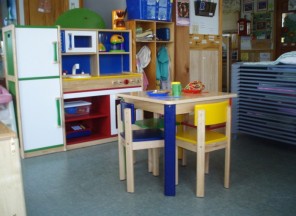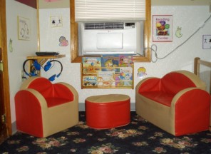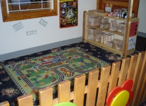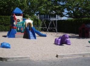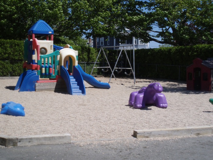 There is a hidden treasure behind the lush greenery that lines the property. Within it you will find a playground that includes large and small climbing toys and swings. You will also find a super-sized sandbox and a large separate area for riding toys.