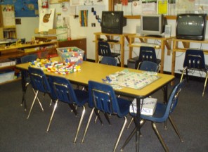 School age children are separated into four different age groups, with a separate space for kindergarten children. This is a room for second and third grade children.